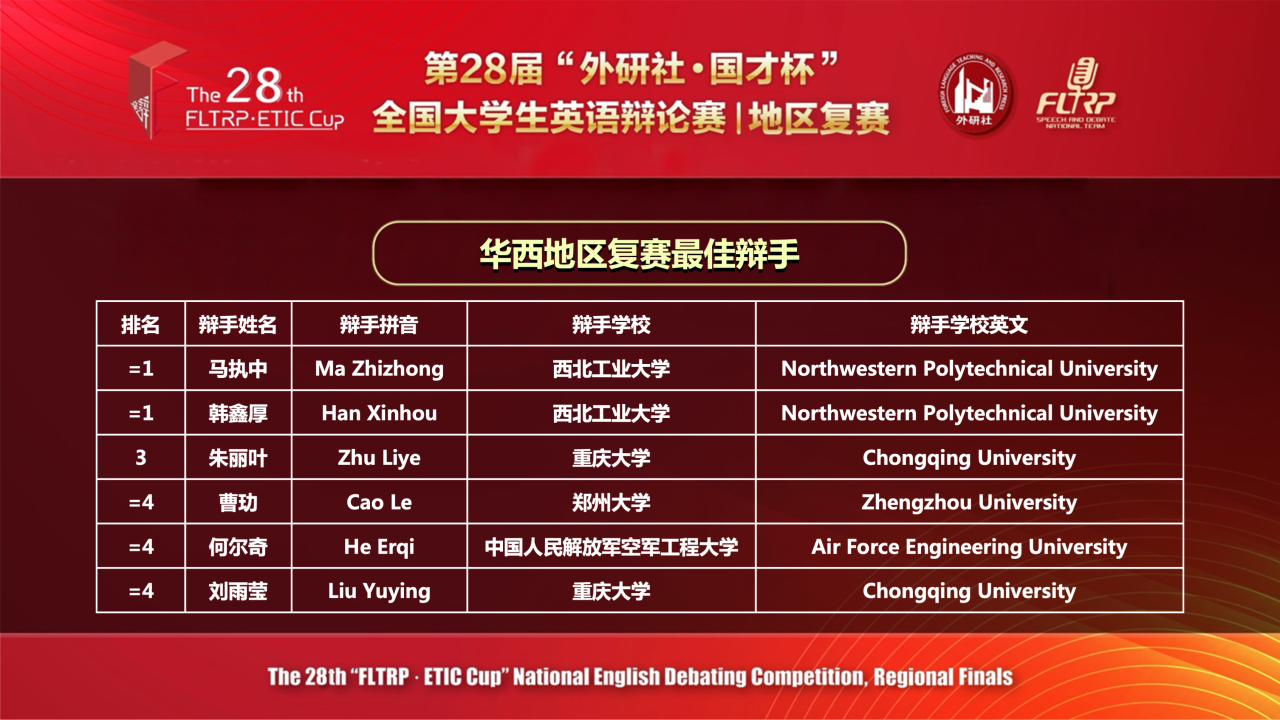 2026年4月18日-19日,第28届“外研社•国才杯”全国大学生英语辩论赛华西赛区复赛在线上举行,色播