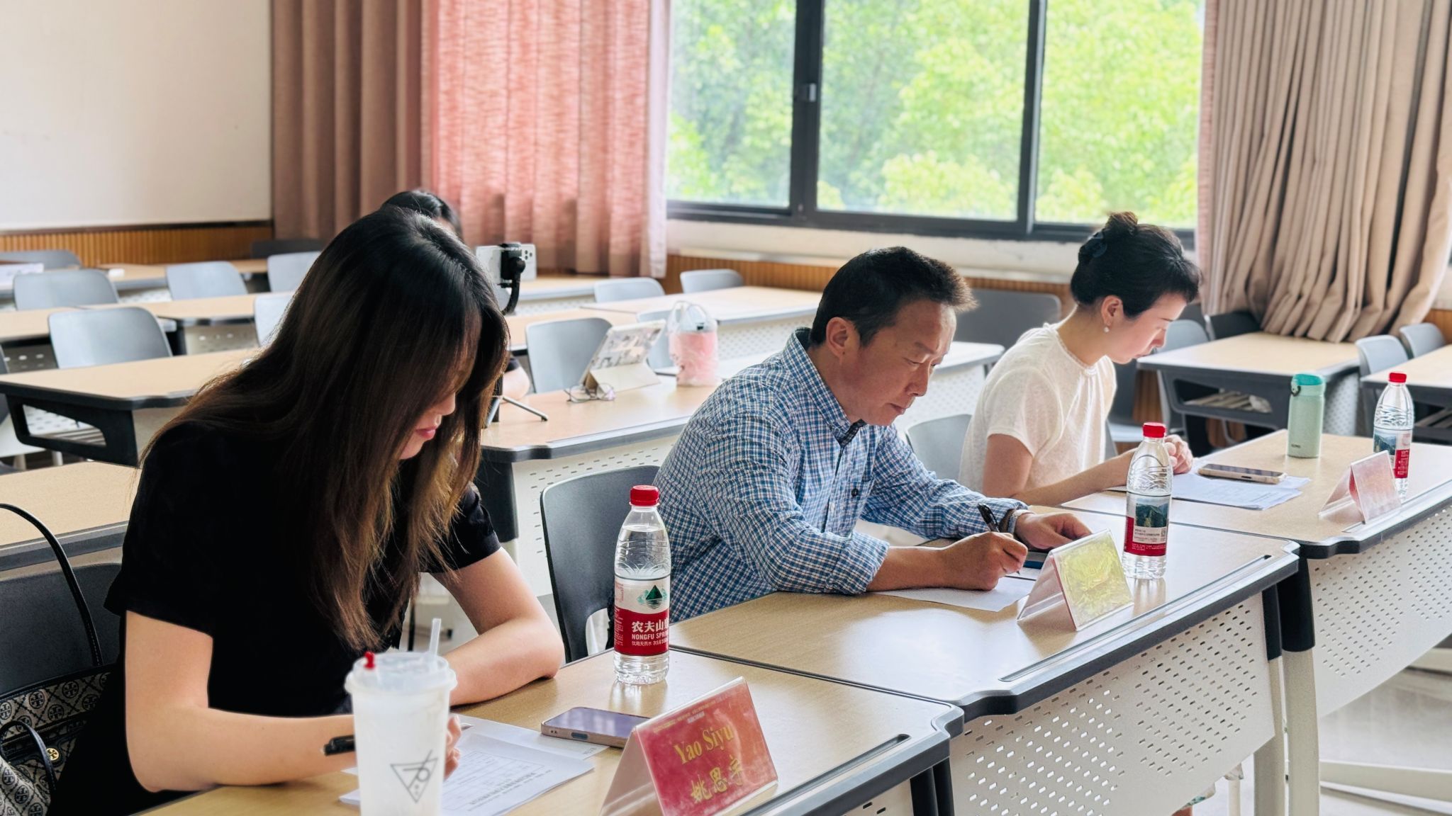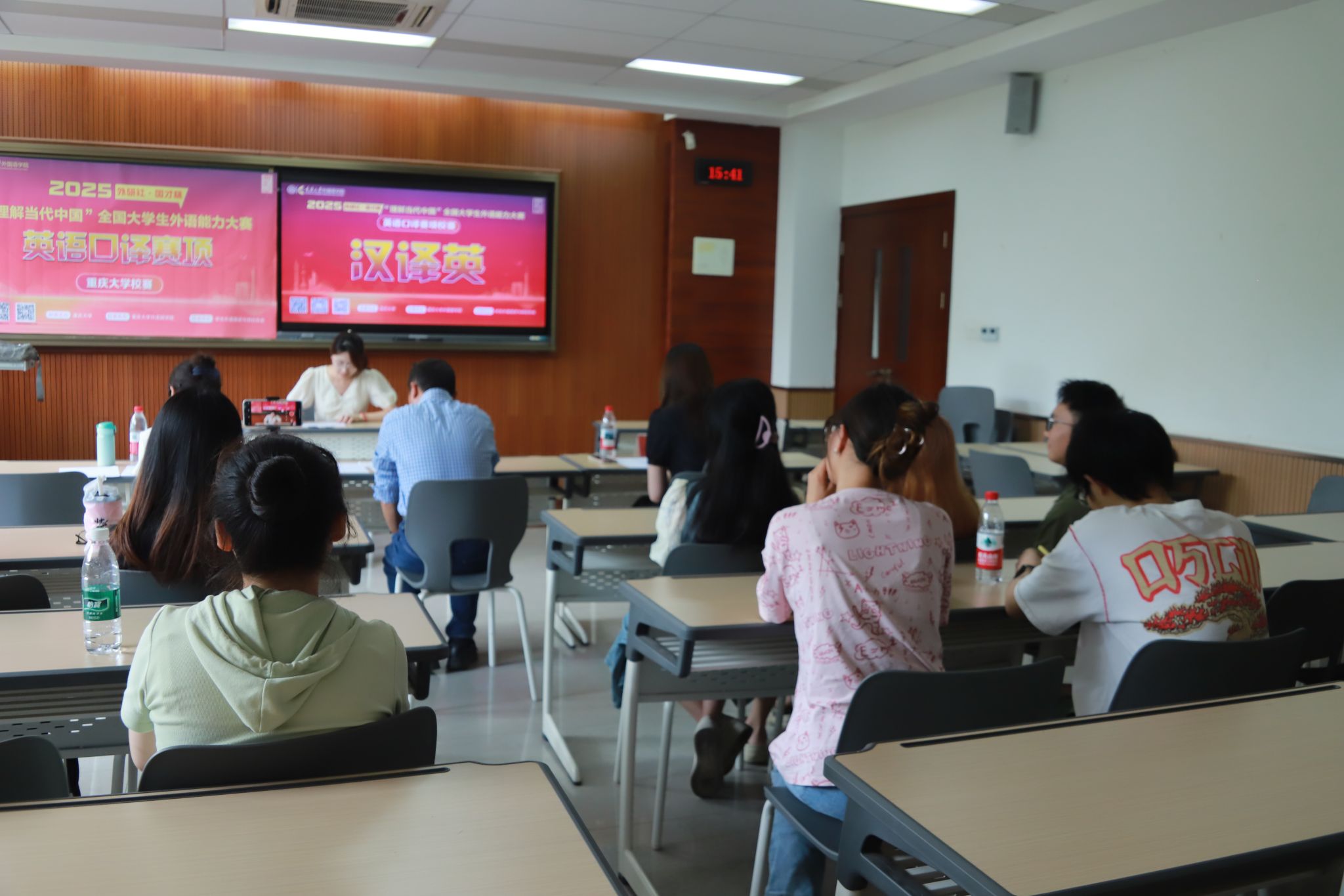 英语系范定洪、李媛媛、姚思宇三位老师担任评委,从信息完整性、语言准确性、表达流畅度等多个维度综合评价选手表现。
